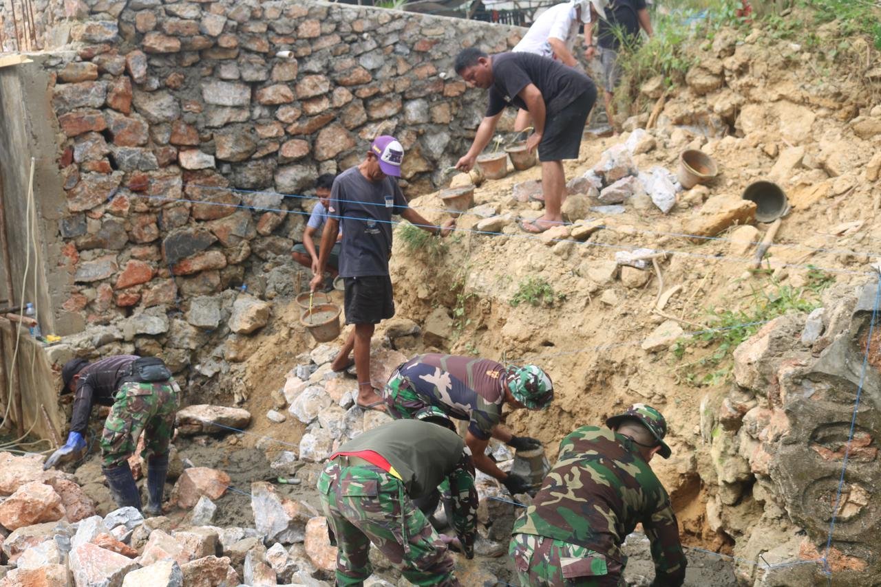 Sejak pagi hari, prajurit TNI dan warga sudah terlihat saling bahu-membahu mengangkut material serta menyelesaikan pengerjaan konstruksi yang menjadi kebutuhan vital masyarakat. Kekompakan yang terbangun membuat pekerjaan berat terasa lebih ringan.