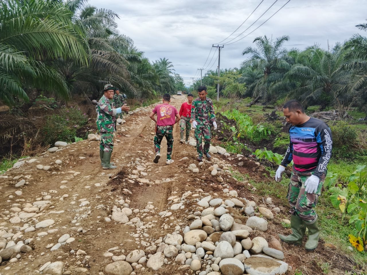 Teriknya matahari tidak menyurutkan semangat para prajurit dan warga. Dengan peralatan seadanya seperti linggis, cangkul, dan karung, mereka bekerja bahu-membahu mengangkut batu dari lokasi pengambilan menuju titik pengerjaan. Sistem gotong royong membuat pekerjaan terasa lebih ringan dan cepat terselesaikan.