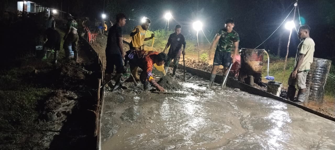 Boven Digoel – Malam tak menyurutkan semangat personel Satgas TMMD ke-126 Kodim 1711/BVD untuk menuntaskan pekerjaan fisik di Kampung Waropko. Pada Selasa (28/10/2025), para prajurit terus melanjutkan proses pengecoran jalan hingga larut malam demi mengejar target penyelesaian tepat waktu.