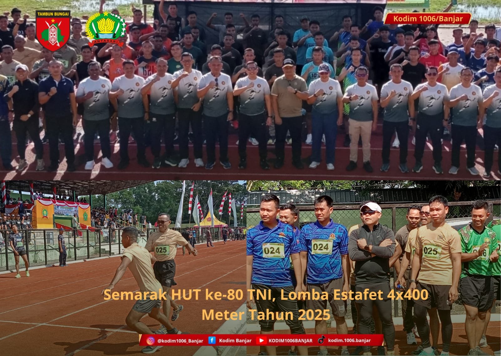 Banjarmasin – Kodim 1006/Banjar turut ambil bagian dalam lomba lari estafet 4×400 meter bertajuk 80 Tahun 400×4 Relay’s 2025 yang digelar di Stadion Lambung Mangkurat, Kota Banjarmasin, Sabtu (27/9/2025).