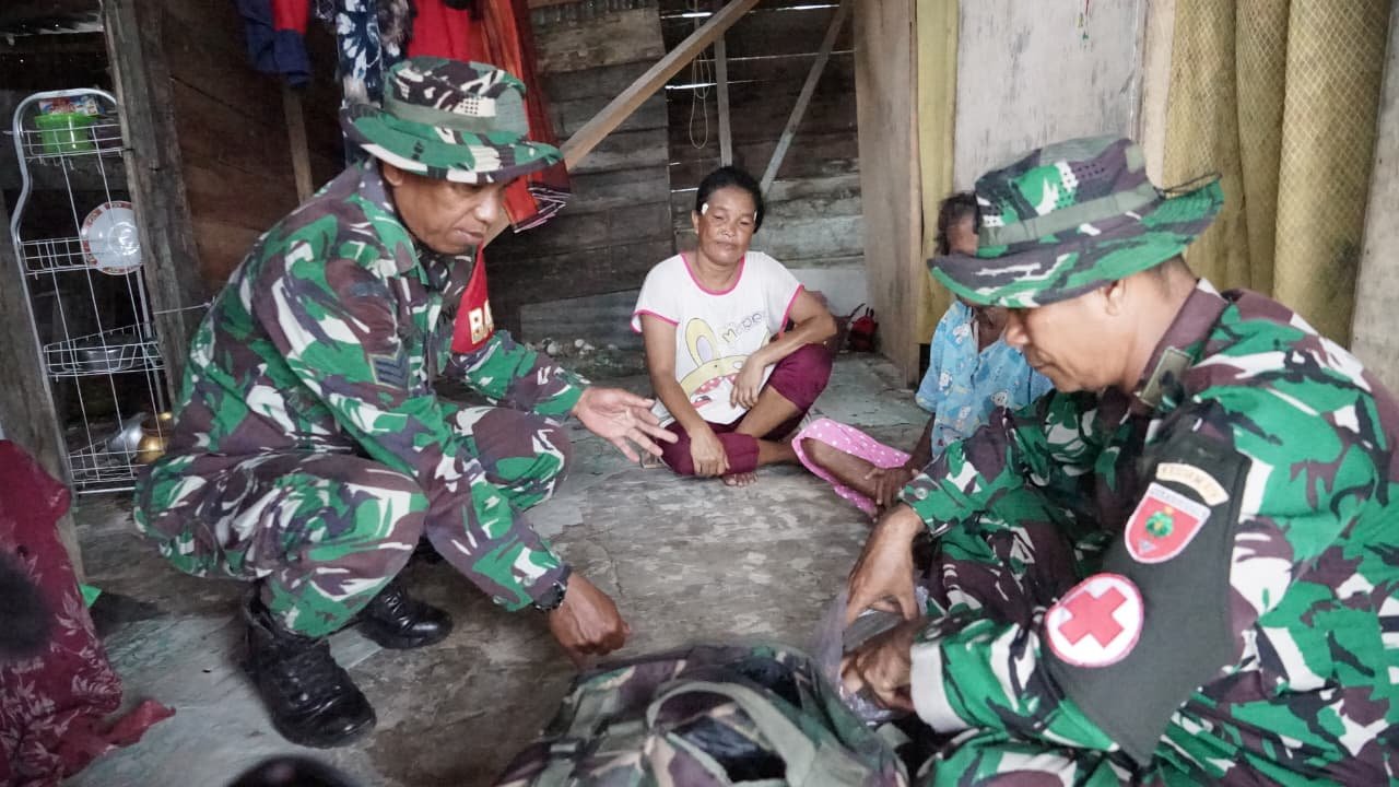Melalui pendekatan door-to-door, personel Satgas TMMD mendatangi rumah warga untuk melakukan pemeriksaan kesehatan serta memberikan obat-obatan sesuai keluhan yang dirasakan masyarakat.