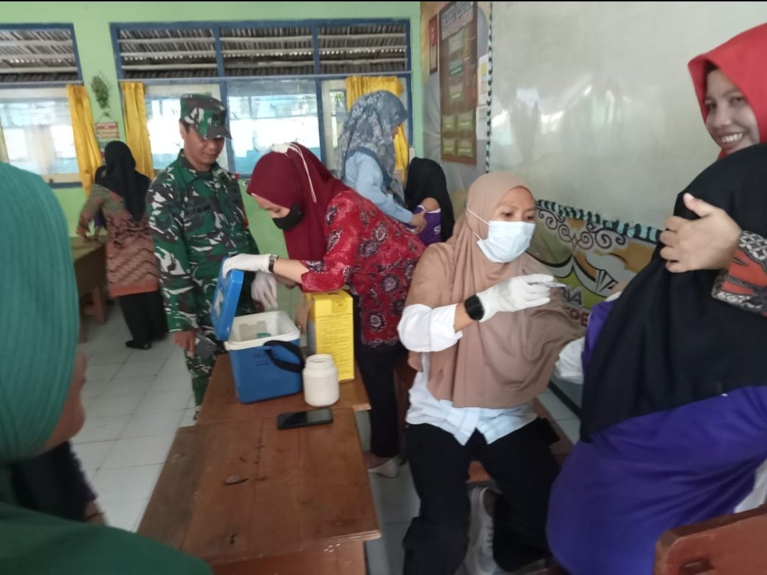 Bangkalan – Serka Makmun, Babinsa Koramil 0829-05/Kwanyar, melaksanakan pendampingan imunisasi kejar HPV untuk anak perempuan usia 15 tahun yg di Laksanakan oleh Nakes Puskesmas Kwanyar kepada Siswi SMPN 1 Kwanyar, Kec. Kwanyar, Kab. Bangkalan.
