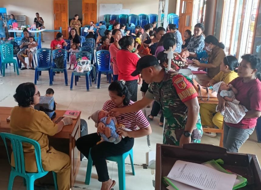 Kodim Poso, – Sertu Berkat Tologana, anggota Koramil 1307-01/Poso Kota, melaksanakan kegiatan pendampingan Posyandu Balita dan Lansia yang diselenggarakan di kantor Kelurahan Ranononcu, Kecamatan Poso Kota Selatan, Kabupaten Poso. Kegiatan ini bertujuan untuk mendukung kesehatan masyarakat, khususnya bagi balita dan lansia, dengan memberikan pelayanan medis serta pemeriksaan kesehatan secara berkala.