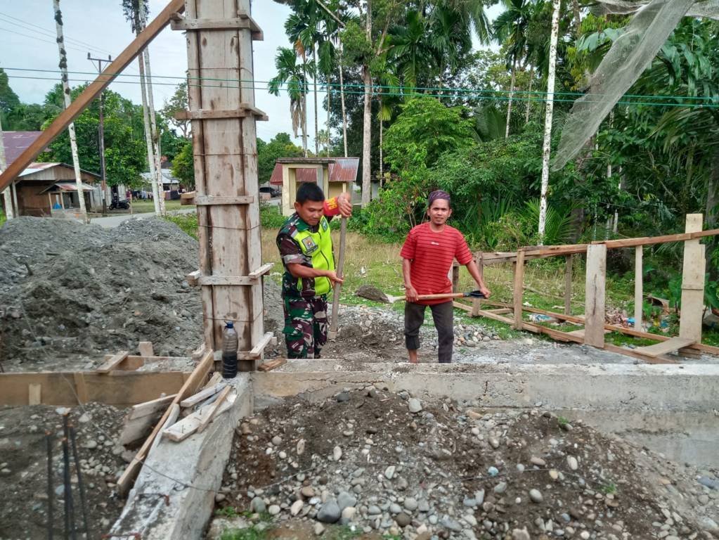 Kegiatan ini dilakukan sebagai bagian dari tugas kewilayahan Babinsa dalam menjalin kemanunggalan TNI dengan rakyat. Dalam suasana penuh semangat gotong royong, Sertu Ongku bahu-membahu bersama warga menimbun pondasi rumah yang sedang dalam tahap pembangunan.