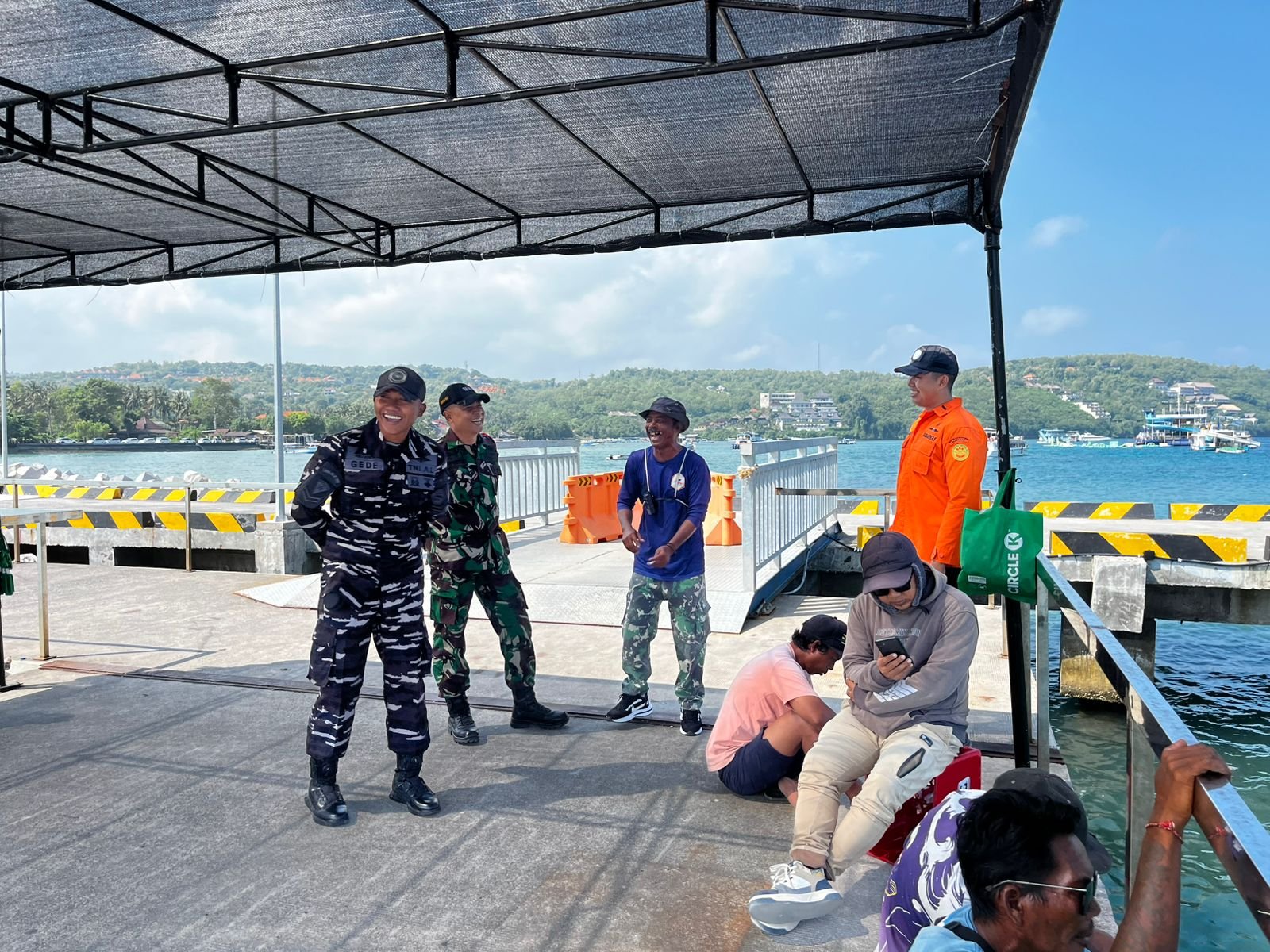 Tampak aparat gabungan yang terdiri dari Koramil, Polesek dan Pos AL Nusa Penida bersinergi bersama UPP Pelabuhan dan Basarnas terus meningkatkan kewaspadaan dan kesiapsiagaan untuk memastikan situasi wilayah kondusif.