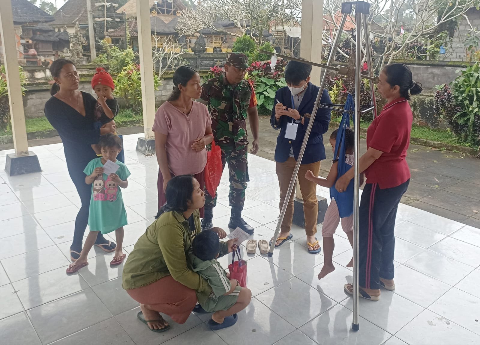 Bangli – Bertempat di Balai Banjar Bangkiangsidem, Desa Bangbang, Kecamatan Tembuku, Kabupaten Bangli, Babinsa Desa Bangbang Koramil 1626-03/Tembuku Pelda Kadek Widiarta melaksanakan pendampingan dan pemantauan kegiatan Posyandu Balita, Selasa (12/08/2025).