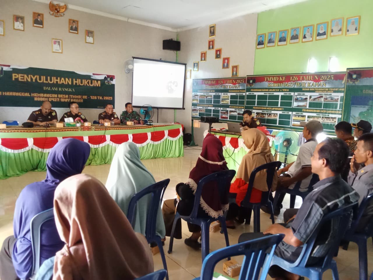 Kegiatan ini menjadi bentuk nyata kolaborasi antara TNI dan Kejaksaan Negeri Way Kanan dalam menciptakan masyarakat desa yang taat hukum dan berkarakter.