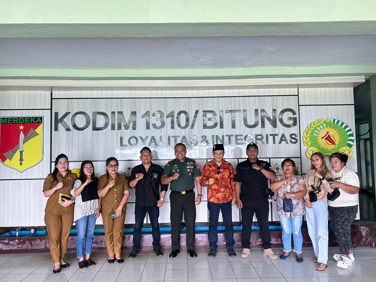 Dandim 1310/Bitung Letkol Inf Dewa Made DJ yang didampingi Perwira Staf menyambut hangat kunjungan silaturahmi Ketua Umum Pola, Pengurus Pola dan Pimpinan Ormas. Kegiatan berlangsung harmonis dan saling berdiskusi mengenai keamanan dan ketertiban masyarakat (Kamtibmas) dan Program Pemerintah Pusat termasuk Makan Bergizi Gratis (MBG) yang ada di wilayah Kodim 1310/ Bitung.