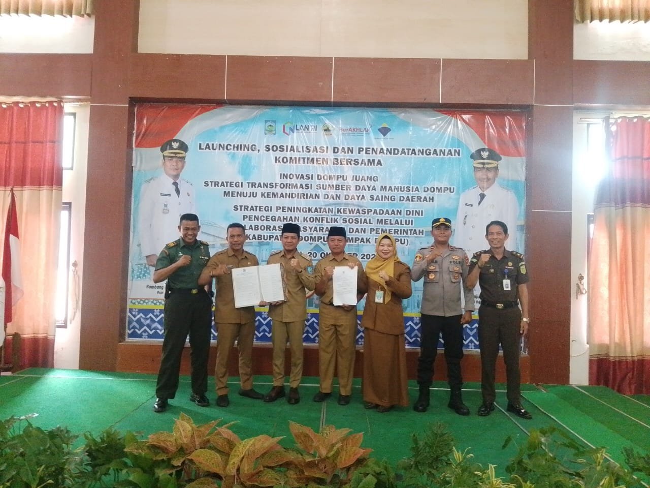 Kegiatan ditutup dengan penandatanganan komitmen bersama serta pemutaran video profil inovasi Dompu Juang dan Kompak Dompu.
