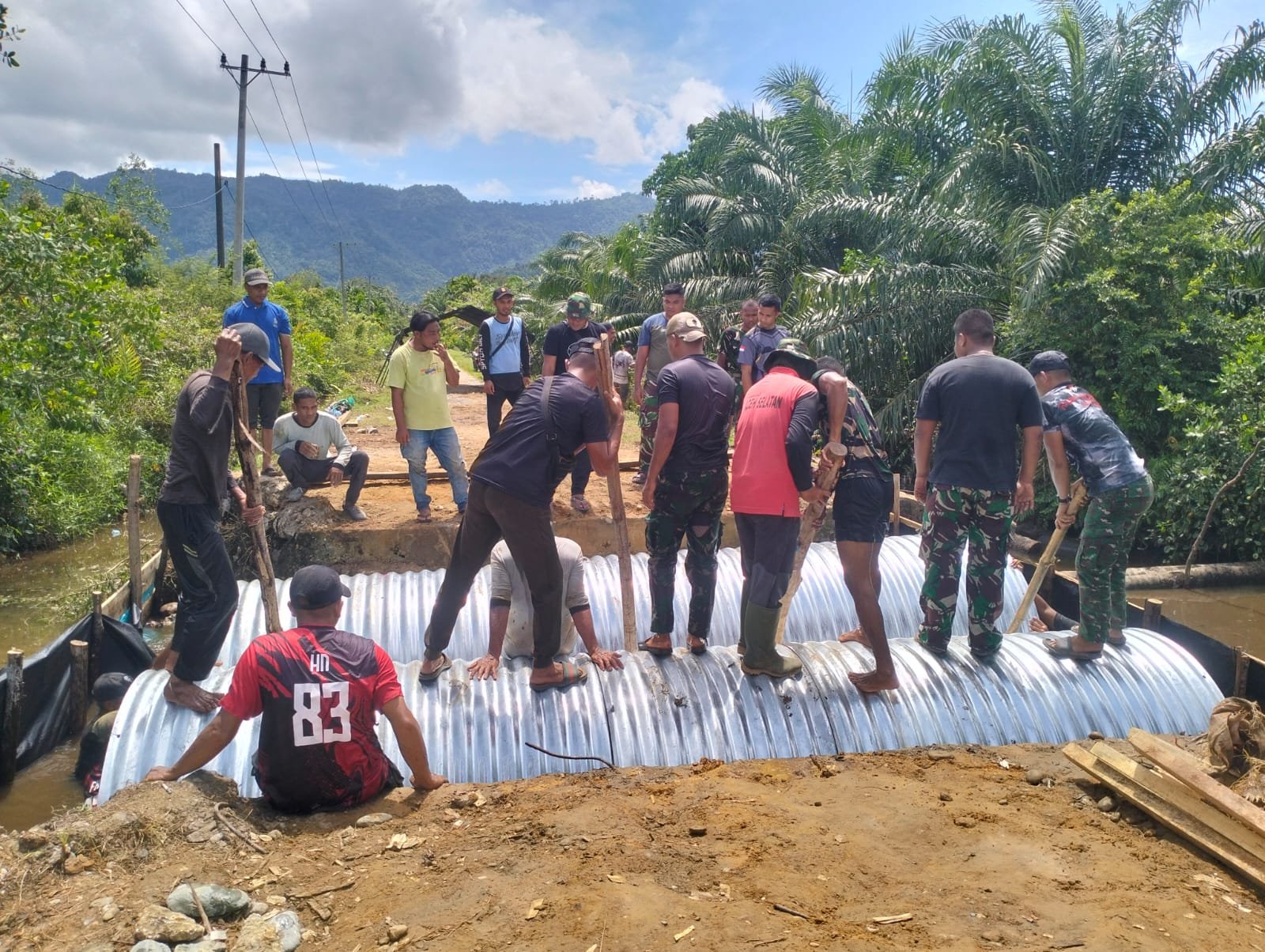 Komandan Kodim (Dandim) 0107/Aceh Selatan, Letkol Inf. Andrino D.N. Lubis, S.Sos., menyampaikan bahwa pengerjaan jembatan terus dipacu dengan melibatkan berbagai pihak.
