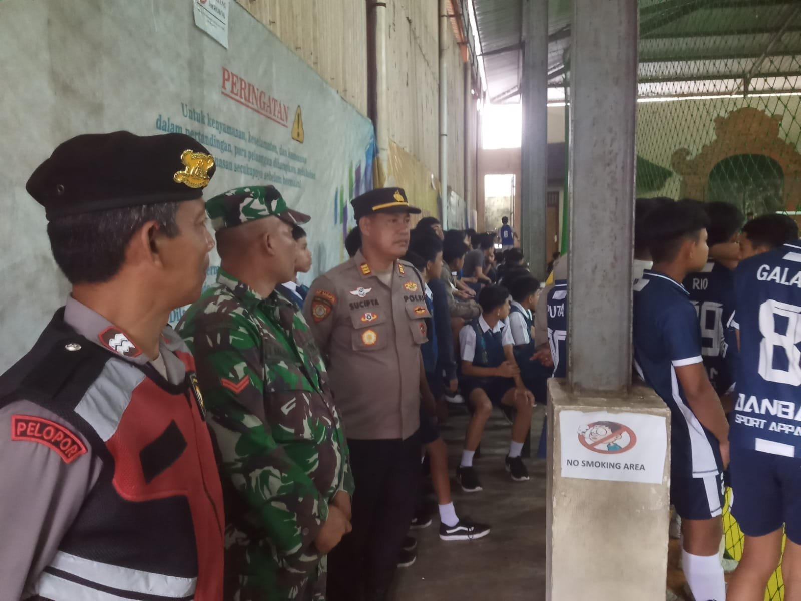 Bangli – Babinsa Desa Sulahan Koramil 1626-02/Susut, Koptu I Made Sukadana, bersama Bhabinkamtibmas Desa Sulahan, Aiptu I Wayan Sukayasa, melaksanakan pengamanan kegiatan turnamen futsal tingkat SMP se-Kecamatan Susut. Selasa (30/09/2025)