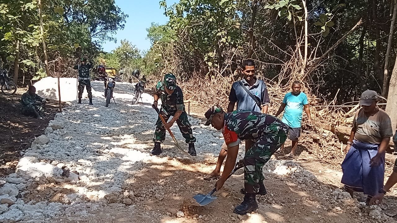 Komandan Kodim 1604/Kupang selaku Dansatgas TMMD Ke-124, Kolonel Inf Kadek Abriawan, S.I.P., M.H.I., turun langsung memimpin pekerjaan pengerasan jalan sepanjang 1,4 kilometer dan lebar 3 meter di Desa Huilelot, Kecamatan Semau, Kabupaten Kupang. Ia bahkan ikut menyekop material yang tercecer, menunjukkan komitmen bahwa pimpinan turut merasakan jerih payah anggotanya di lapangan. Sabtu (17/05/2025).