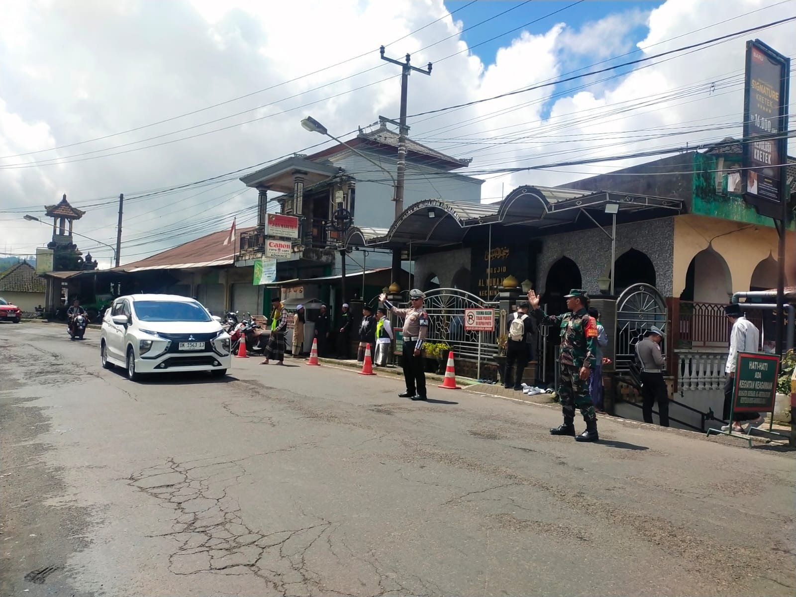 Bangli – Dalam rangka memberikan pelayanan kepada masyarakat berupa rasa aman dan nyaman pada saat pelaksanaan Ibadah Sholat Jumat, Babinsa Koramil 1626-04/Kintamani dengan BHabinkamtibmas dari Polsek Kintamani secara rutin melaksanakan pengamanan Sholat Jumat di Masjid Al-Muhajirin, Desa/Kecamatan Kintamani, Kabupaten Bangli. Jumat (25/04/25)