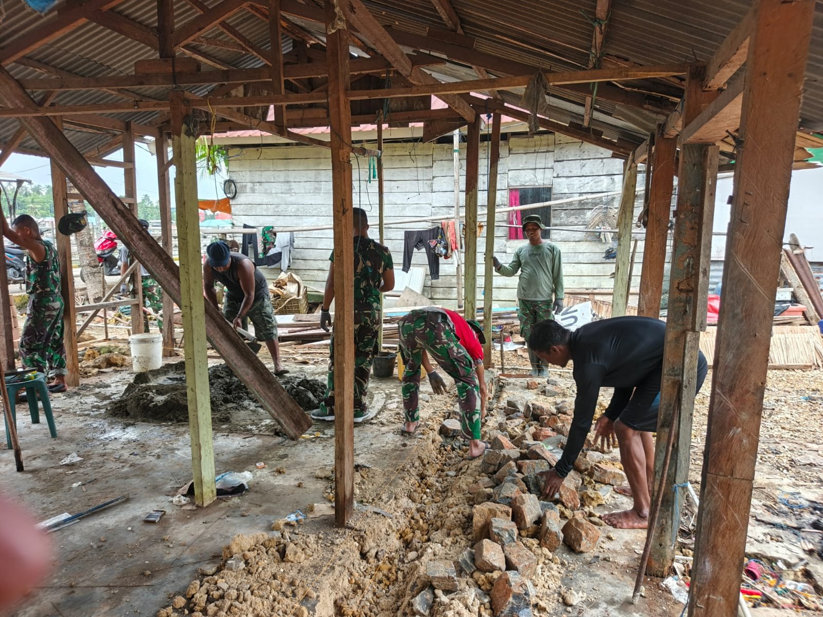 Kendari – Sinergitas TNI, Polri, dan Pemerintah Kelurahan terlihat nyata dalam pelaksanaan program rehabilitasi Rumah Tidak Layak Huni (RTLH) pada kegiatan TMMD ke-127 Kodim 1417/Kendari. Hal tersebut tampak saat Babinsa, Bhabinkamtibmas, dan Lurah Petoaha meninjau langsung proses pembangunan di Kelurahan Petoaha, Kecamatan Nambo, Kamis (12/2).