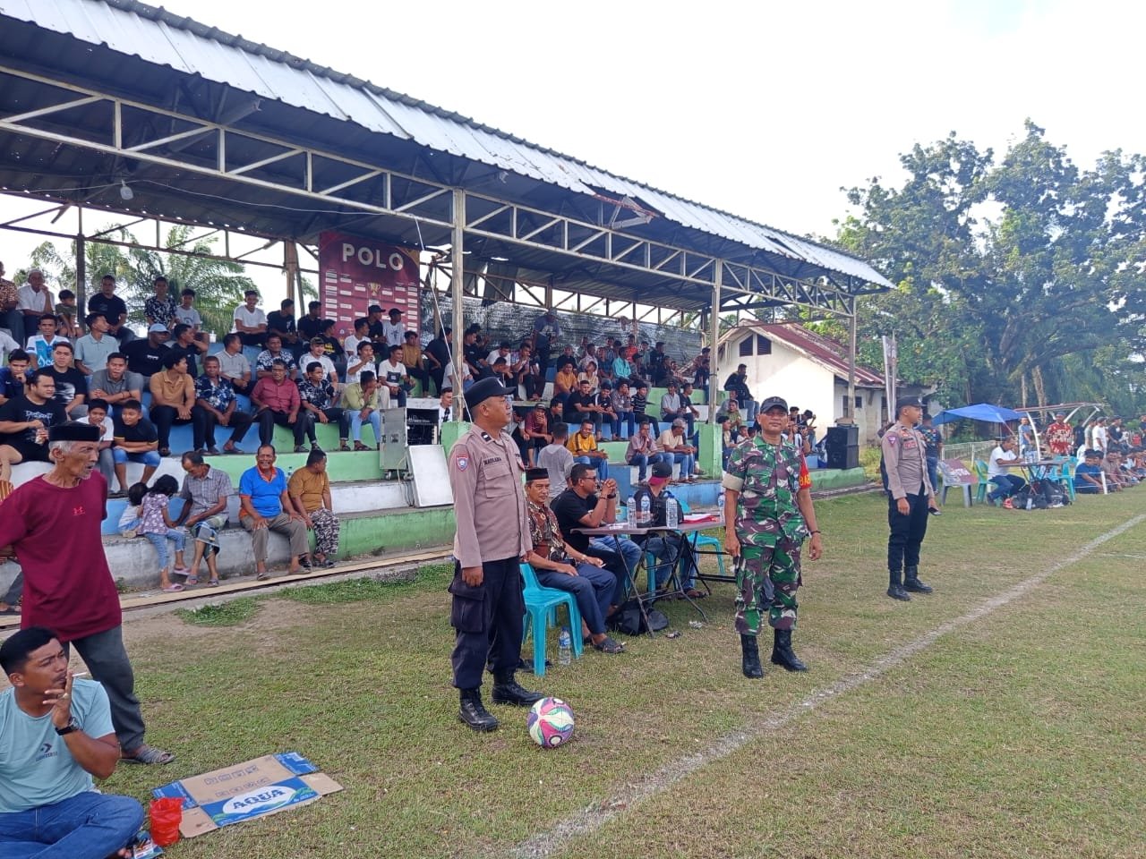 Sinergitas TNI-Polri Amankan Turnamen Sepakbola Keuchik Cup II 2025 di Aceh Jaya
