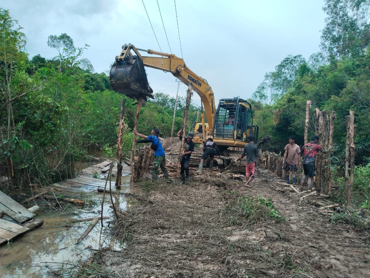 Barito Selatan – Proses pembangunan infrastruktur jalan pada kegiatan TNI Manunggal Membangun Desa (TMMD) Ke-124 Kodim 1012/Buntok terus berlanjut. Salah satu titik pembukaan jalan masih memerlukan penanganan khusus karena kondisi tanah yang labil. Untuk itu, Satgas TMMD terus melakukan upaya stabilisasi dengan menambahkan kayu cerucuk guna memperkuat struktur dasar jalan.