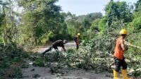 Babinsa Koramil 03/Setia Bakti dan Petugas PLN Bersihkan Pohon Tumbang di Desa Lhok Buya