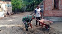 Peduli Warganya, Babinsa Bantu Angkat Pasir untuk Pembangunan Rumah