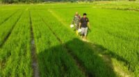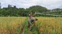 Babinsa Turun Langsung ke Sawah Dampingi Petani Mengecek Pertumbuhan Tanaman Padi