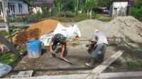 Penuh Semangat Walaupun Berpuasa, Babinsa Bantu Aduk Campuran Pasir Semen untuk Percepat Pembangunan