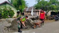 Babinsa Koramil 09/Samatiga Serda Maulizar Bantu Warga Dalam Pengecoran Pondasi Rumah di Desa Pucuk Lueng, Kecamatan Samatiga