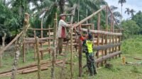 Babinsa Posramil 05/PC Terus Perkuat Kemanunggalan TNI–Rakyat Lewat Gotong Royong Pembangunan Kandang Ternak Kerbau