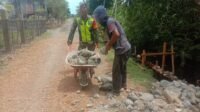 Babinsa Koramil 09/Samatiga Sertu Buchari Muslim Bantu Warga Desa Cot Seulamat Bangun Talud Penahan Jalan, Dibiayai dari Dana Desa