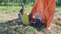 Babinsa Posramil 05/Pante Ceureumen, Koptu Azhari, Dampingi Petani Panen Kacang Tanah di Wilayah Binaan
