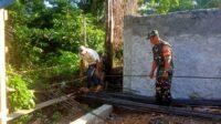 Babinsa Panga Bantu Warga Rakit Besi Pondasi Rumah