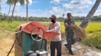 Mendukung Swasembada Pangan, Babinsa Bantu Petani Rontokan Padi Menggunakan Mesin