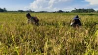 Sukseskan Ketahanan Pangan, Babinsa Bantu Petani Panen Padi