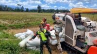 Babinsa Koramil 03/Senagan Timur Dampingi Petani Panen Padi dengan Alat Modern di Desa Binaan