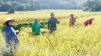 Korem 012/TU : Babinsa Posramil Teupah Barat Melaksanakan Panen Padi Bersama Warga Binaan
