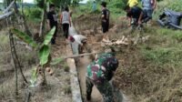Babinsa Koramil 1003-02/Padang Batung Turun ke Lapangan, Gotong Royong Bersihkan Saluran Irigasi