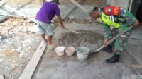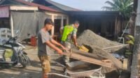 Babinsa Koramil 01/Sungaimas Bantu Aduk Semen Percepatan Pembangunan Rumah Warga