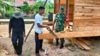 Satgas TMMD Kebut Pemasangan Atap dan Dinding Rumah Kai Zaini di Desa Tumih