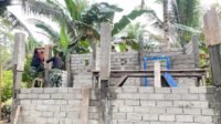 Meski cuaca panas cukup ekstrem, pengerjaan tetap berjalan sesuai tahapan. Dimulai dari pemasangan papan mall, penyusunan batu koral sebagai penguat pondasi, hingga pengecoran beton secara bertahap dan terukur.