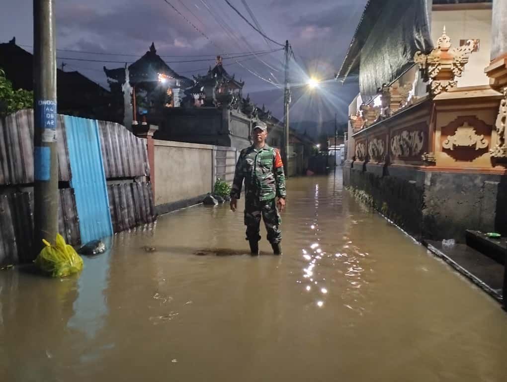 Iya, air sudah menggenangi pemukiman warga dengan ketinggian air sekitar satu meter di gang seputaran Banjar Pancingan, sehingga warga mulai mengungsi ke Balai Banjar Pancingan.