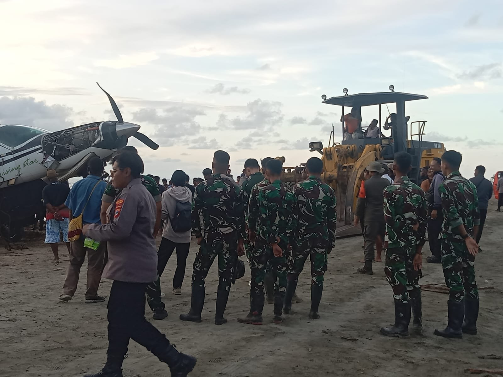 Nabire ~ Personel Kodim 1705/Nabire turut ambil bagian dalam membantu proses evakuasi pesawat Smart Air dengan nomor registrasi PK-SNS yang mengalami insiden pendaratan darurat di air (emergency landing on water) di Pantai Lokbon Karadiri, Kabupaten Nabire, Papua Tengah, pada [Selasa, 27 Januari 2026].