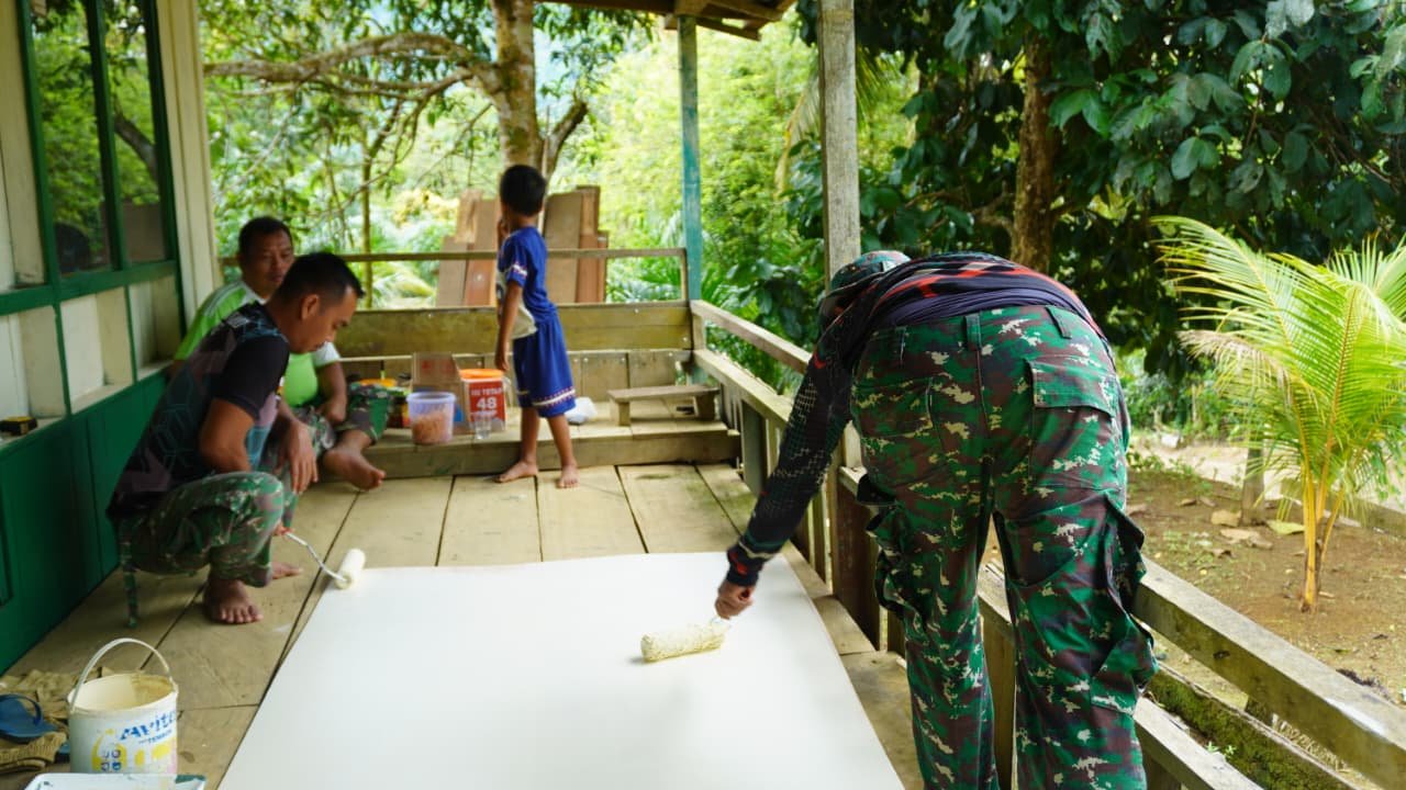 Teliti dan Cermat, Satgas TMMD ke-127 Kodim 1015/Sampit Pastikan Pengecatan Plafon RTLH Maksimal