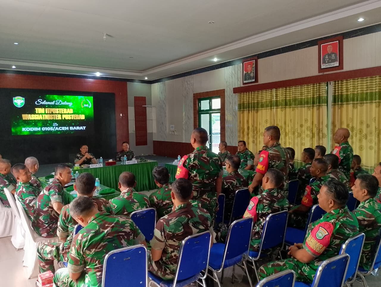 ACEH BARAT – Bertempat di Aula Kodim 0105/Abar, Jalan Imam Bonjol, Desa Drien Rampak, Kecamatan Johan Pahlawan, dilaksanakan kegiatan Wasgiatnister oleh Tim Itpusterad yang diikuti oleh para Perwira Staf, Danramil/Danposramil, Batih, Bamin, dan Babinsa jajaran Kodim 0105/Abar, Kamis (9/4/2026).