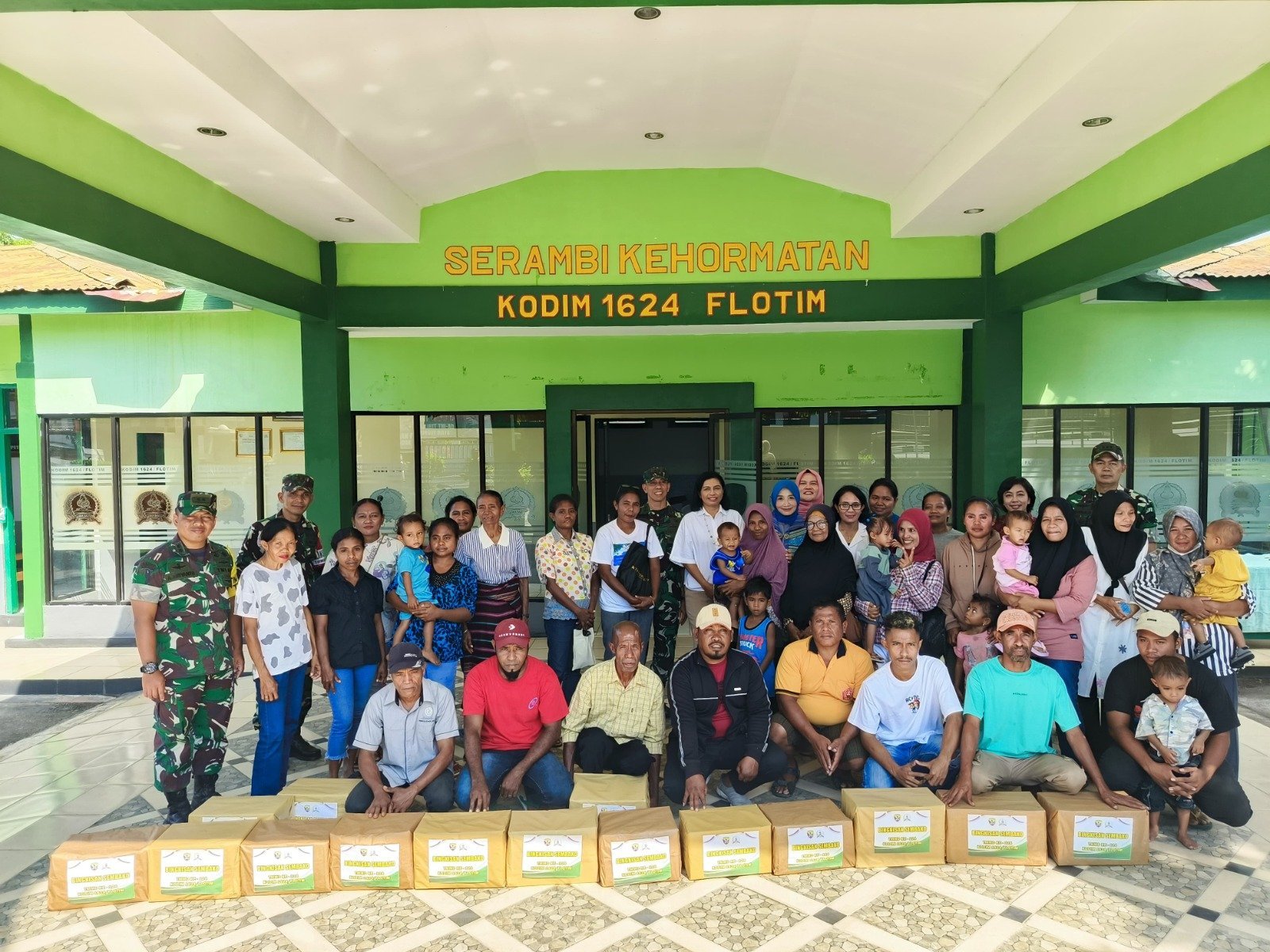 Penyaluran bingkisan yang dilakukan dalam rangka TMMD ke 124 Kodim 1624/Flotim Ta 2025 yang bertempat di Makodim 1624/Flotim, Kelurahan Lokea, Kecamatan Larantuka, Kabupaten Flotim. Selasa (20/05/2025).