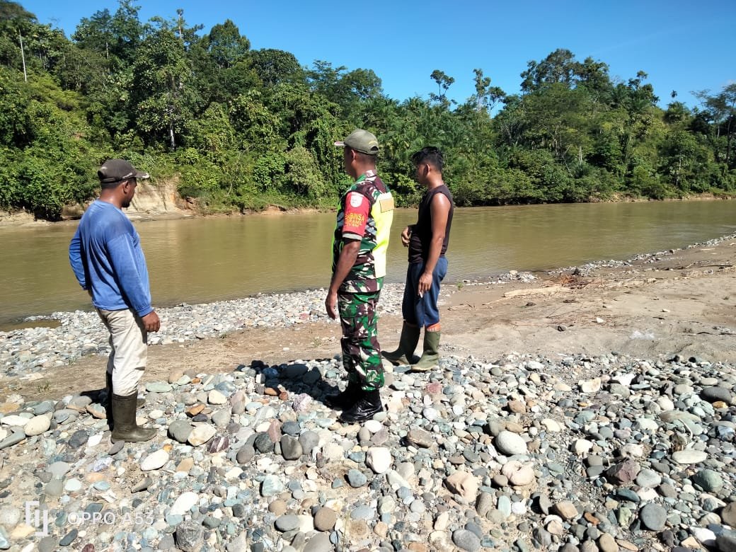 Tingginya Hujan Saat Ini Babinsa Koramil 01/Sungaimas Cek Debit Air Sungai di Desa Binaan