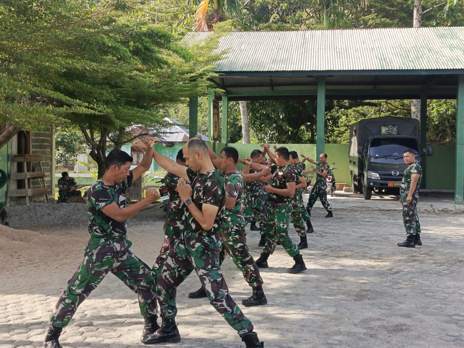 “Latihan beladiri taktis ini untuk mengasah dan meningkatkan kembali kemampuan prajurit, sehingga siap menghadapi berbagai situasi di lapangan,” ujar Pelda Fitrah.