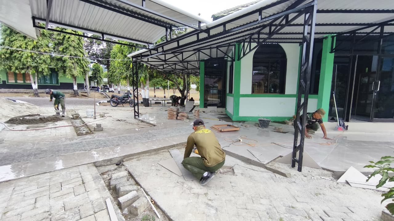 Tingkatkan Kenyamanan Tempat Ibadah, Kodim 0112/Sabang Pasang Granit Teras Meunasah