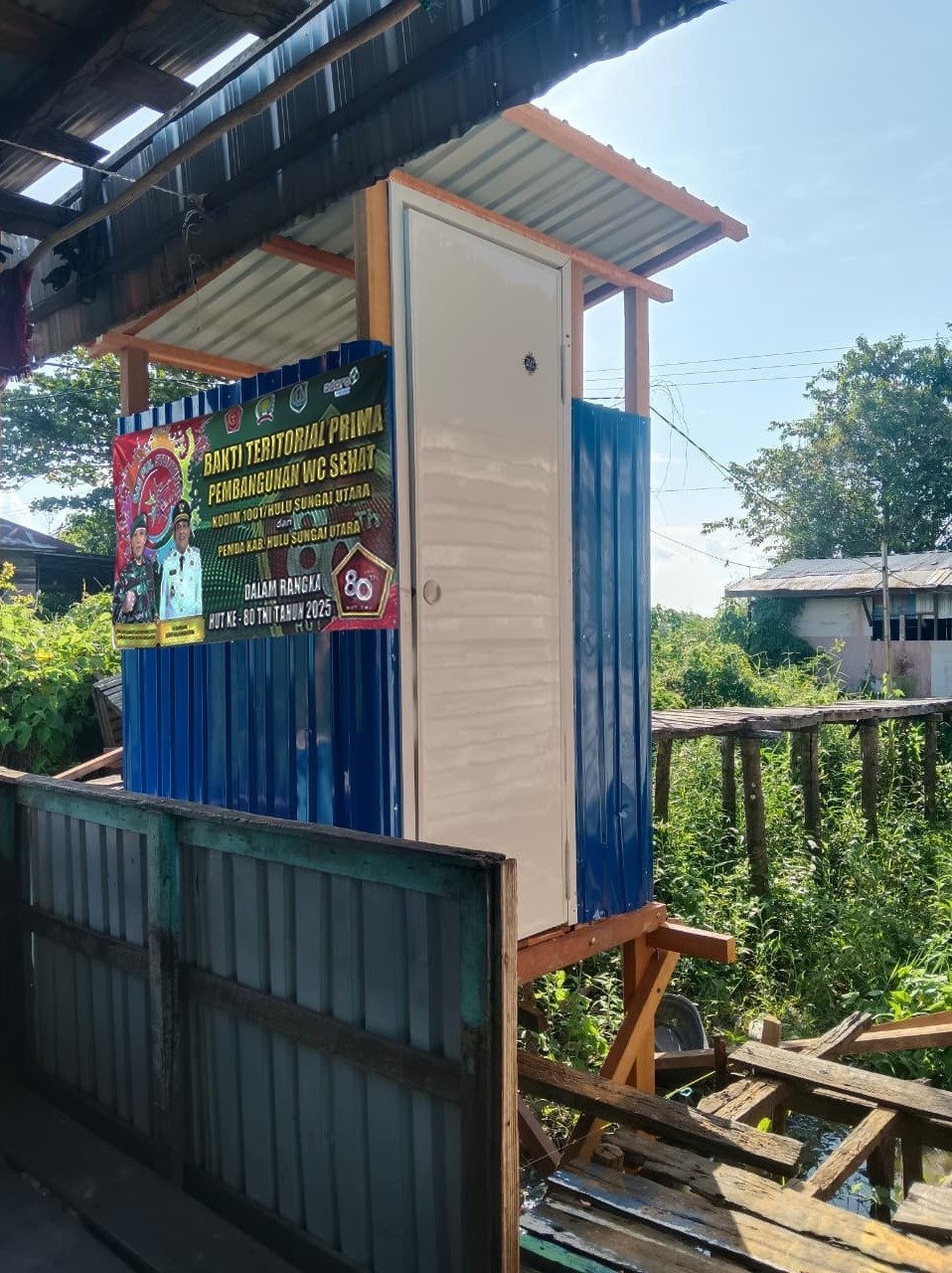 HULU SUNGAI UTARA – Dalam rangka memperingati Hari Ulang Tahun (HUT) ke-80 Tentara Nasional Indonesia (TNI), Kodim 1001/HSU-BLG bersama Pemerintah Daerah menuntaskan kegiatan Bakti Sosial berupa pembangunan WC Sehat melalui program Bakti Teritorial Prima. Pembangunan ini selesai 100 persen pada Jumat (12/09/2025) di rumah warga, Bapak Syaid M. Fadilah, Desa Paminggir, Kecamatan Paminggir, Kabupaten Hulu Sungai Utara.