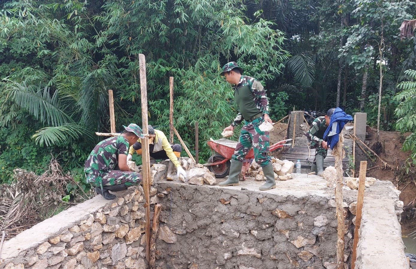 HULU SUNGAI SELATAN – Komitmen TNI untuk hadir di tengah rakyat kembali dibuktikan Kodim 1003/Hulu Sungai Selatan. Personel Kodim 1003/HSS bersama warga bahu membahu membangun Jembatan Perintis Garuda konstruksi beton di Desa Karang Jawa Muka Kecamatan Padang Batung Kabupaten HSS. Jumat 17/4/26.