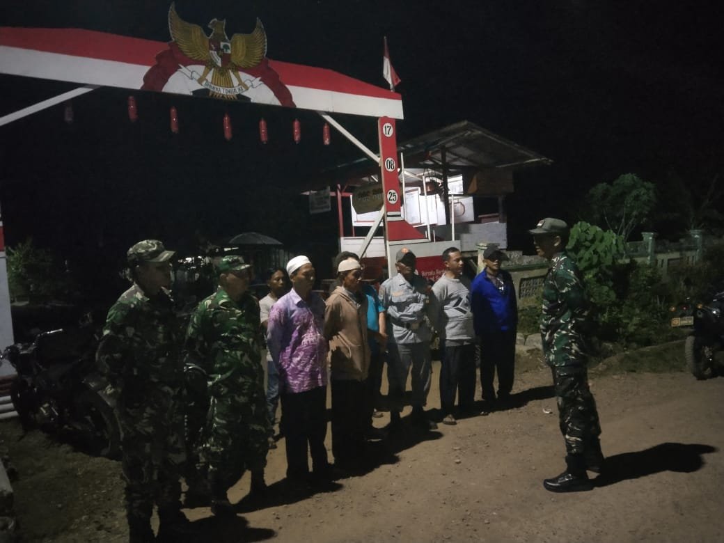 Kapten Inf Nyoman Tike, Danramil 1004-02/Pamukan Utara, beserta Serma Eko Ariyanto, Babinsa Desa Mayang Sari Koramil 02/Pamukan Barat, melaksanakan pengontrolan pos kamling dan ronda malam di wilayah binaannya, Minggu (14/09/2025) malam.