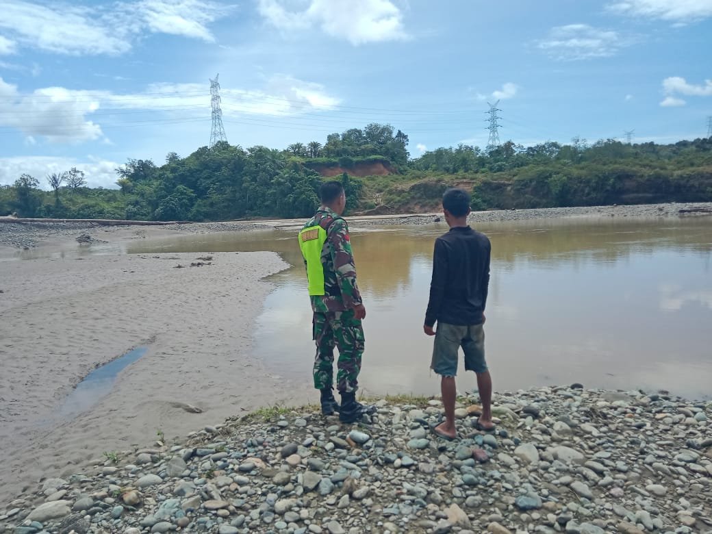 Tingkatkan Waspada Banjir Babinsa Koramil 01/Sungaimas Laksanakan Giat Pengecekan Debit Air Sungai di Desa Tutut