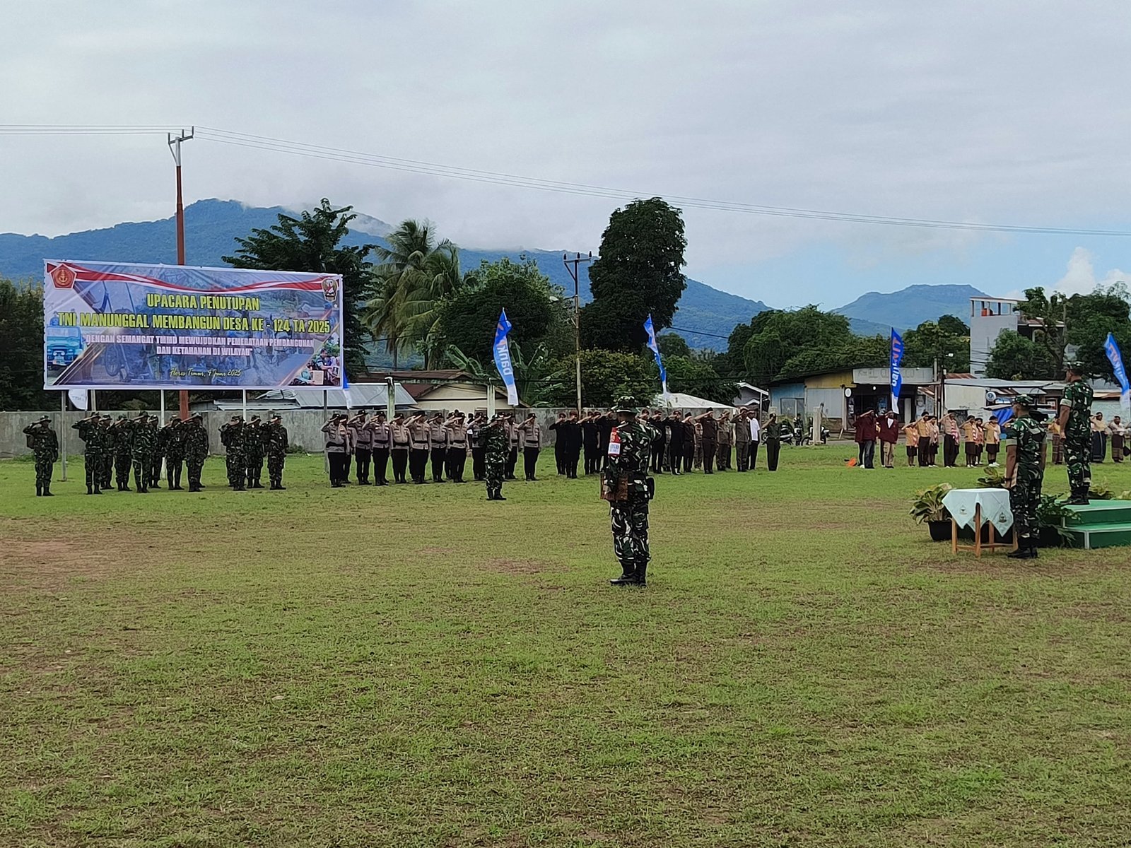 Brigjen TNI Taufik Hanafi, Kasdam IX/Udayana, berdiri tegak di mimbar upacara, memimpin langsung penutupan program TNI Manunggal Membangun Desa. Dalam suaranya yang tegas, ia menyampaikan amanat Pangdam IX/Udayana yang menekankan arti penting TMMD bukan hanya soal pembangunan infrastruktur, tapi juga tentang memperkuat ketahanan sosial dan nasional dari akar rumput.